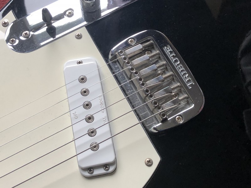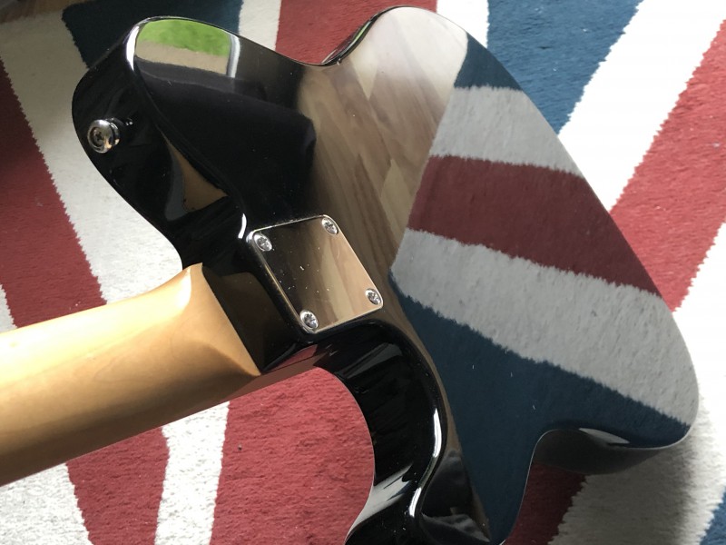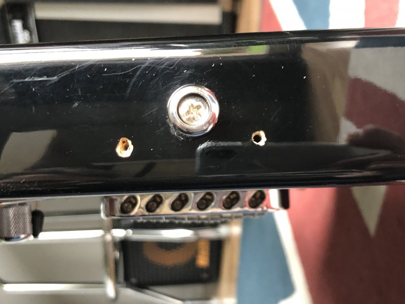 Les deux trous autour de l’attache courroie viennent d’un temps où je lui avait monté un B Bender.