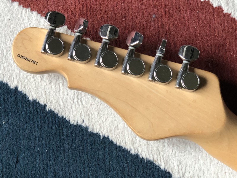 C’est une des toutes premières années de production ce qui explique le logo différent des actuelles. La lutherie est coréenne, les micros et l’accastillage américain. J’ai récemment changé l’électronique pour le mettre au niveau avec du CTS et un sélecteur US. Je l’ai pas mal jouée mais elle est en très bon état hormis quelques micro rayures.