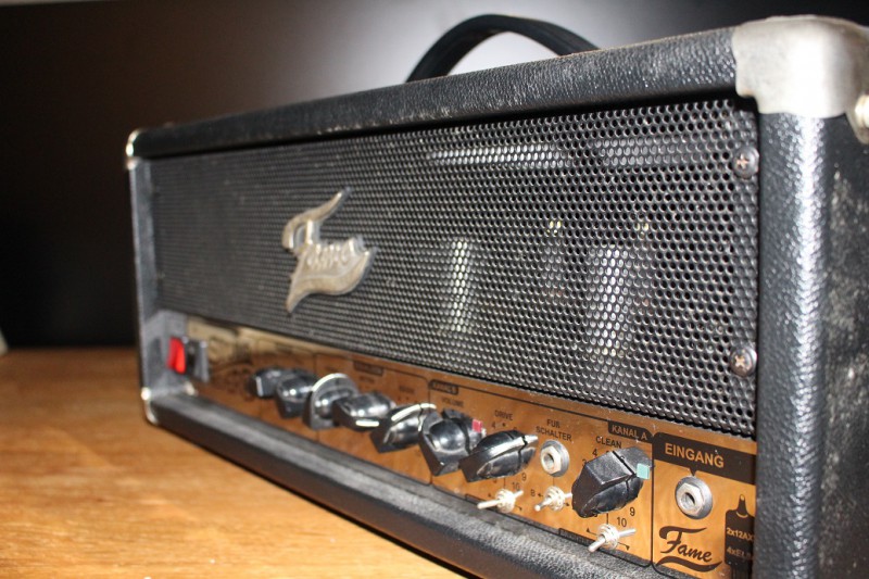 une tête d'ampli Fame (laboga) Studio Reverb 50W. Bon état, lampes de puissances changées en été 2015 (tête jouée environ 20h00 depuis); gros rock- hard rock, très bon rapport qualité prix. Et en parlant du prix : 230 €