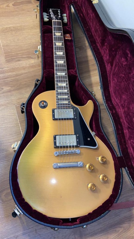 Je vends cette magnifique Gibson Les Paul ’57 Reissue 2011 Aged Goldtop. Le travail de aging est particulièrement réussi, vraiment très réaliste.