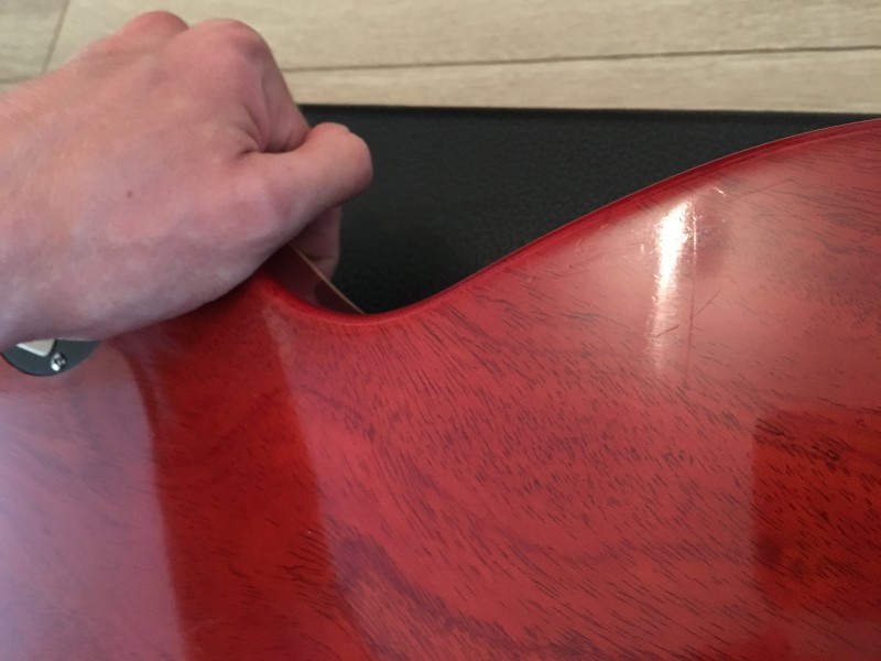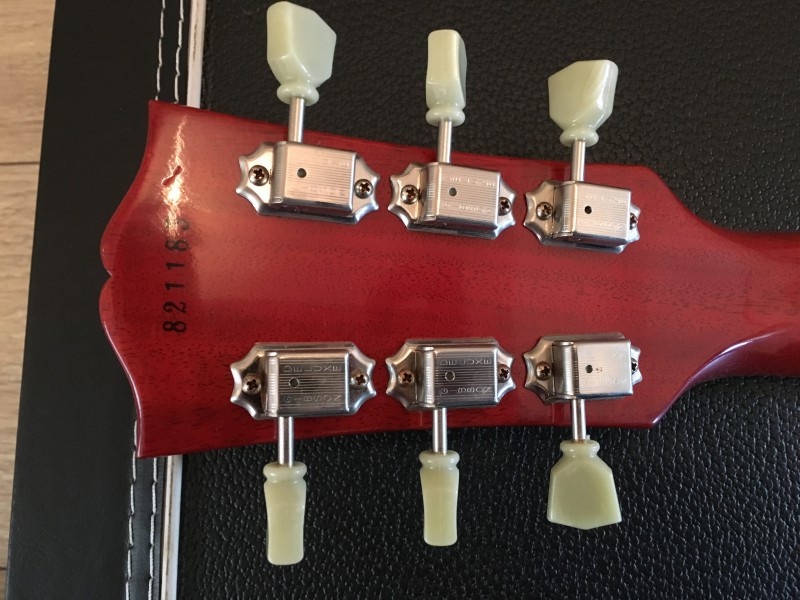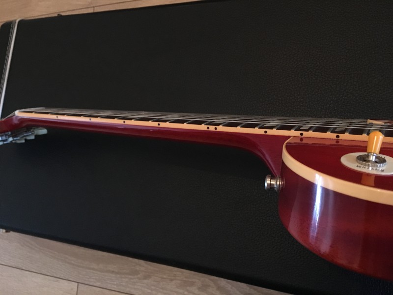 En dehors des classiques marques de jeux au dos du corps et d'un petit accros au niveau du numéros de série la guitare est en parfait état, les frettes ont leurs vie devant elles.