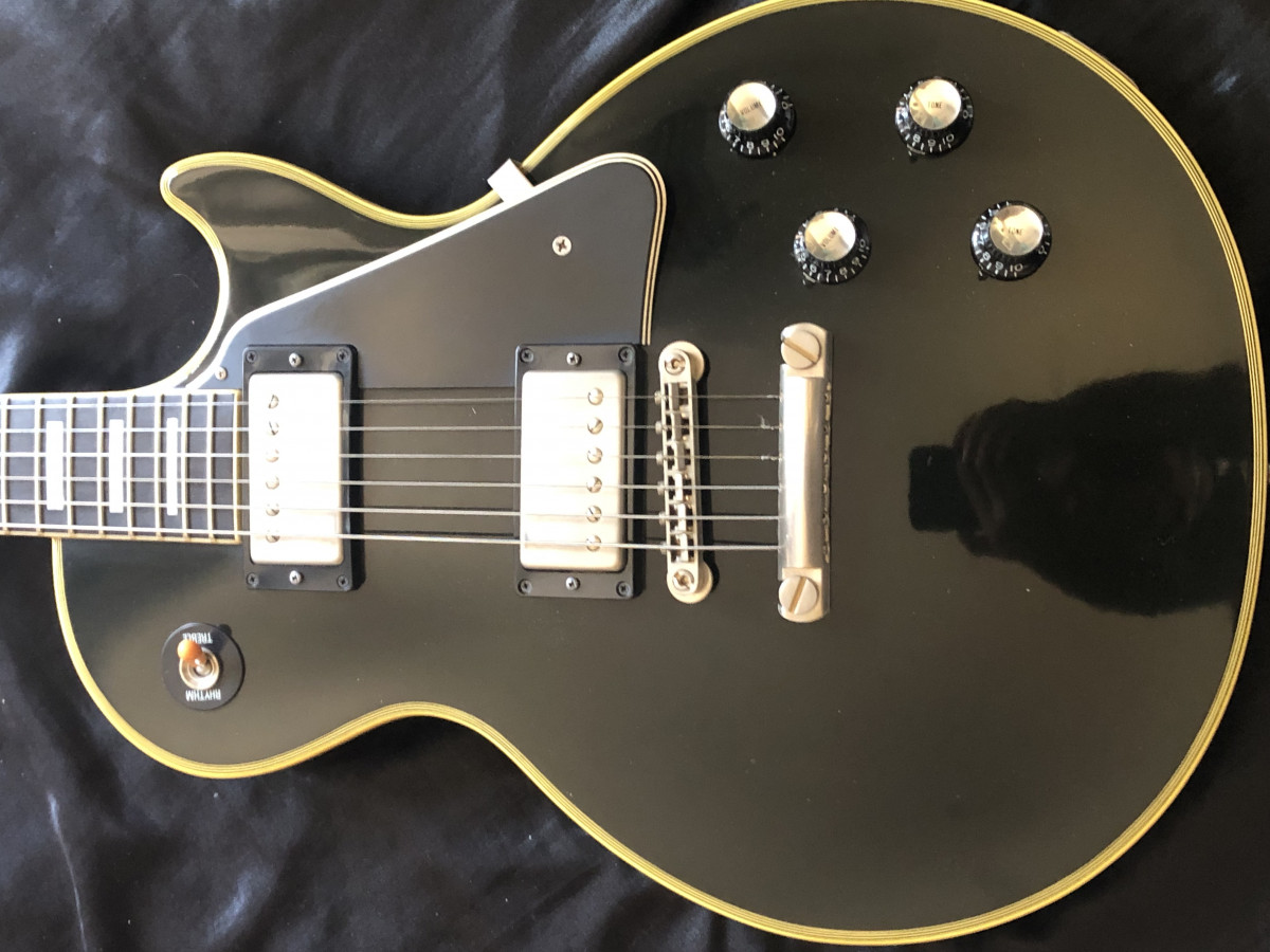 Je propose cet excellent exemplaire de Gibson Les Paul Custom reissue 1968, finition Custom Authentic (légère patine), noire, accastillage chrome patiné, du custom shop Gibson, fabriquée en 2005.