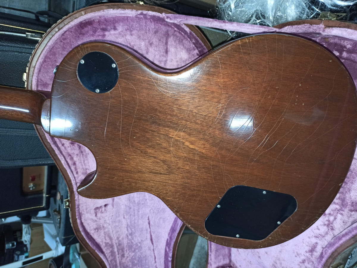 C’est une excellente Les Paul, belle et rare, la concrétisation d’années d’essais et de recherches avant de m’arrêter sur celle-ci. N’ayant plus de groupe et souhaitant revenir à la guitare classique, je me décide à la vendre. Tous les goodies dont le certificat d’authenticité sont inclus dans l’étui Gibson et bien sûr le certificat des ateliers RS Guitarworks.