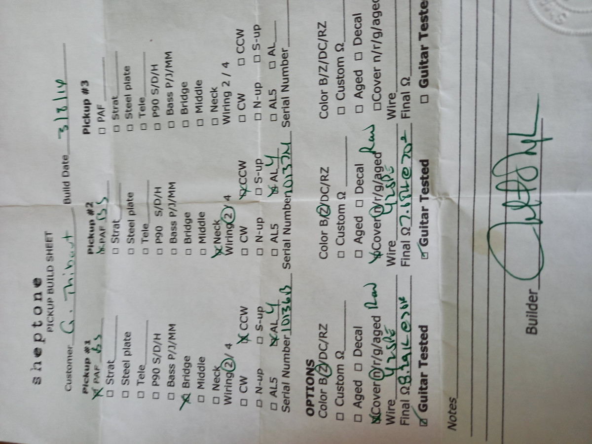 Potentiomètres Gibson d’origine (Vol :300K Tone : 500K).