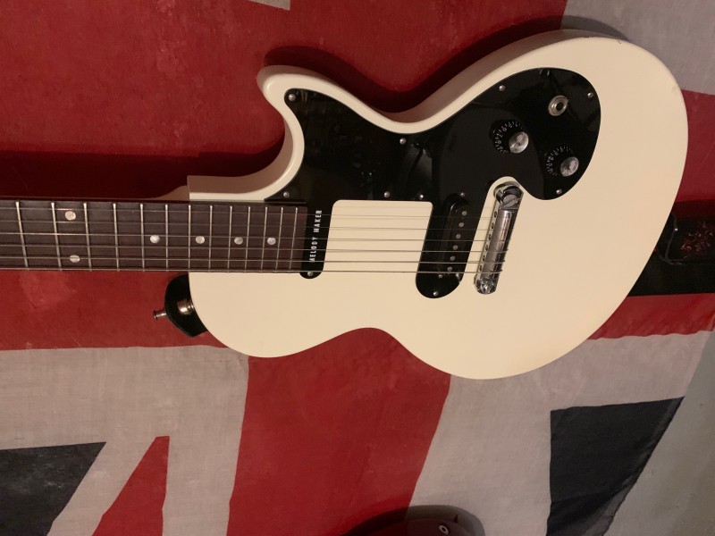 Je me sépare de ma Gibson Melody Maker de 2010 (doc le modèle reissue de 2007 tellement apprécié des afficionados !). Bon état pour un guitare à la finition si fragile !