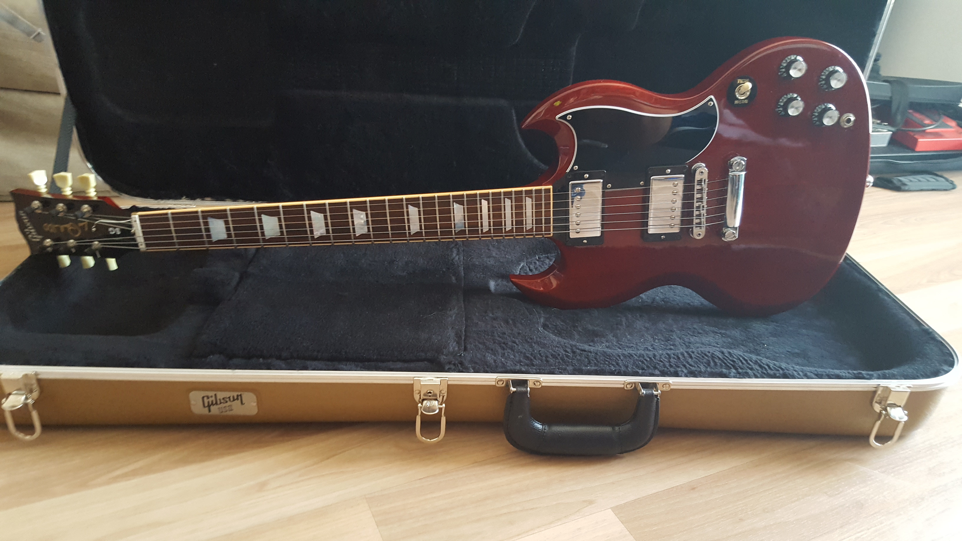 Je mets en vente ou échange une Gibson SG Standard de 2015, couleur Heritage Cherry en très bon état. Vendue avec son certificat et fly case. A ce prix, il s’agit d’une très bonne affaire.