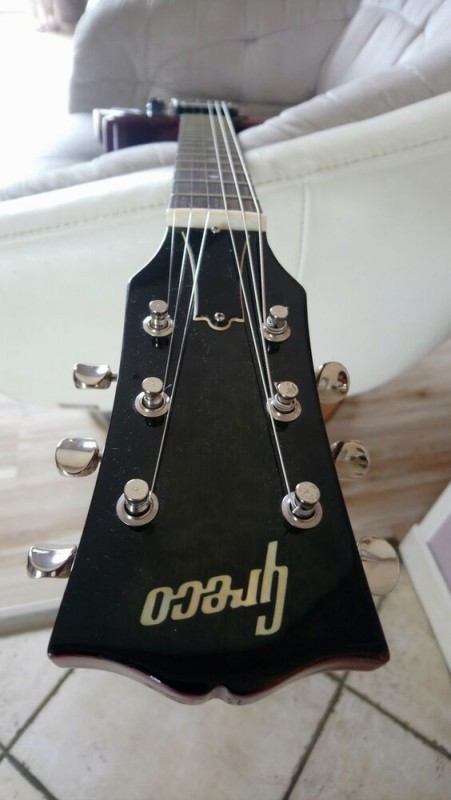 Couleur cherry red. Excellent état. Vernis magnifique et très glissant sur le manche. Manche assez fin ce n’est pas un pieux à la 59. Guitare légère, 3.3kgs, et très résonnante. Plage de sons très étendue en jouant sur le volume et la tonalité. Livrée en étui dur. Expédition possible à voir. Aucun échange je ne joue plus de guitare. frais d’expé en plus prix non négociable