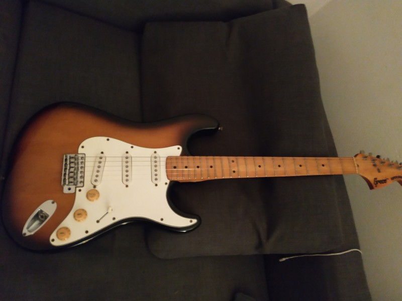 Greco SE 450 de 1978, très bon état à part le vernis qui a sauté au niveau du support de sangle arrière.