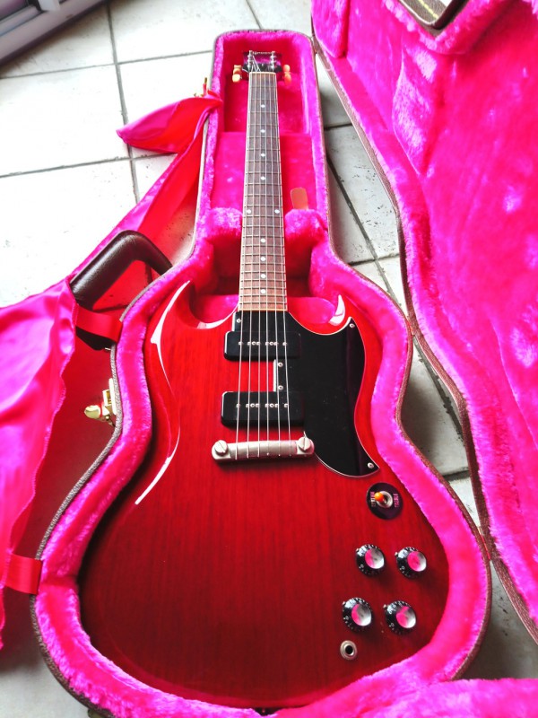 Excellent état de 1990. Frettes et manche en excellent état. Guitare légère et résonnante. Deux p90 greco d’origine. Réglée en ernie Ball 11/48 cordes neuves. Livrée dans l’étui en photo. Aucun échange sauf pour une les Paul japon cherry sunburst tokai.