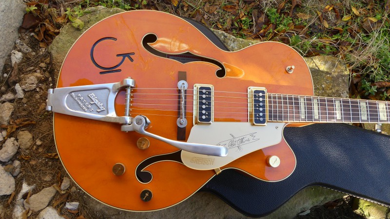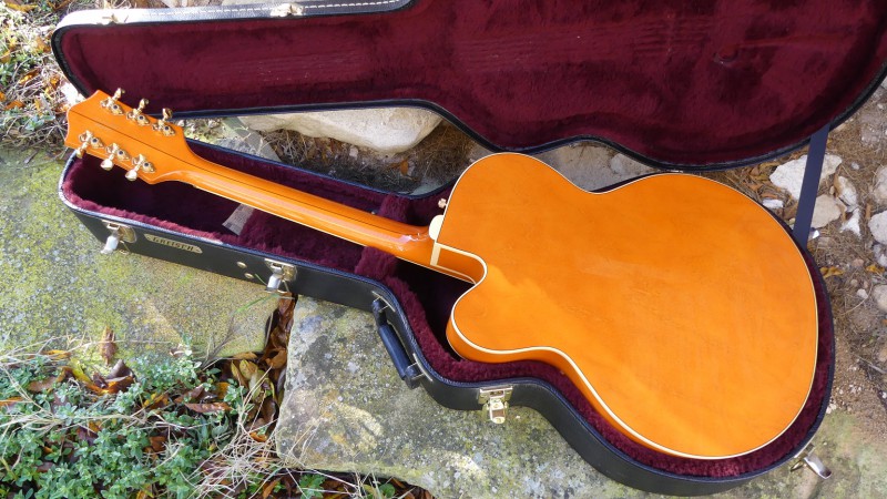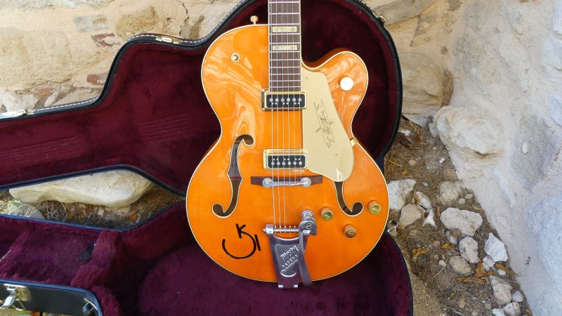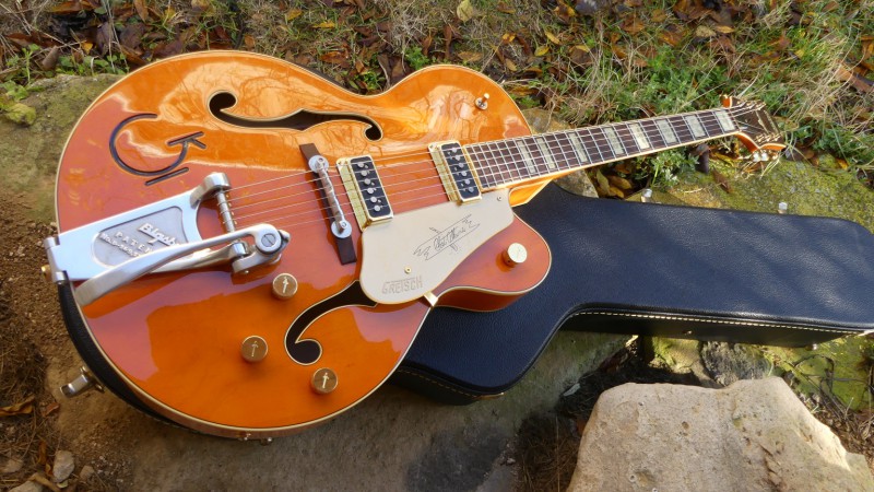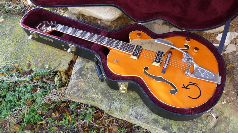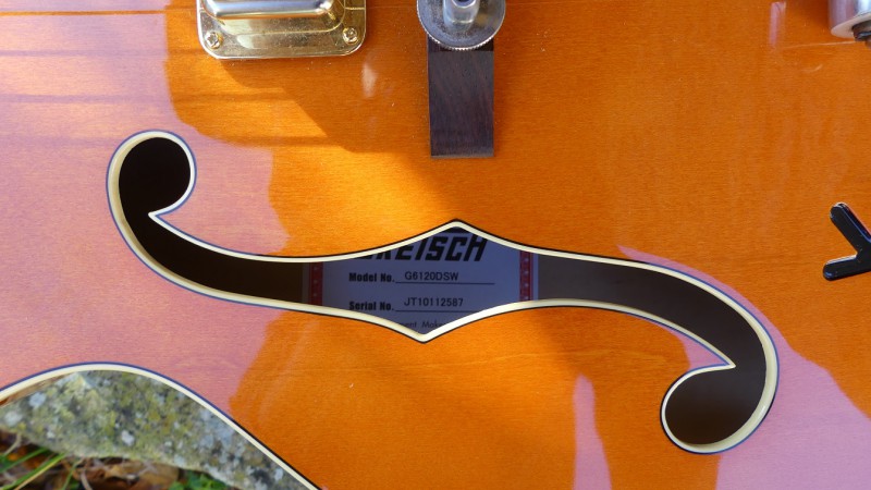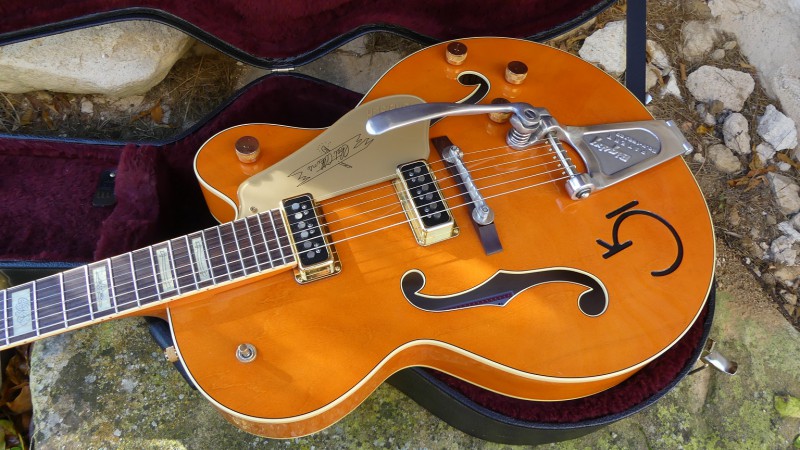 je vends ma Gretsch G6120 DSW Chet Atkins de 2010, Série Pro Made in Japan, qui est en parfait état. Elle n’a aucune trace de choc ou rayure car je suis plutôt maniaque avec mon matériel.