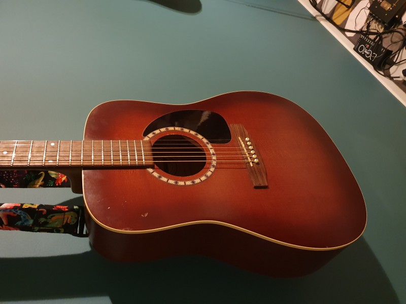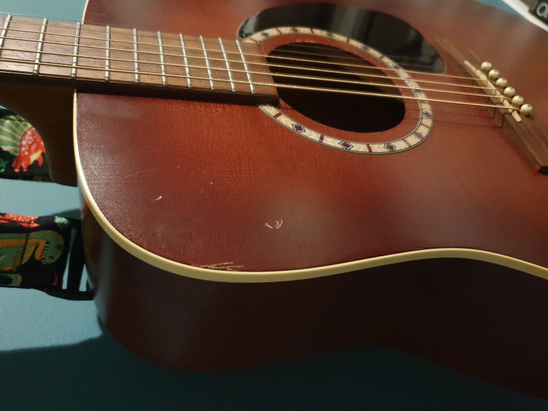 Elle sort de chez le luthier (Promeus Guitares à Lyon), pour un réglage complet et un nouveau sillet en os. Elle sonne nickel. Quelques marques visibles sur les photos, mais qui ne gênent en rien niveau jouabilité évidemment.