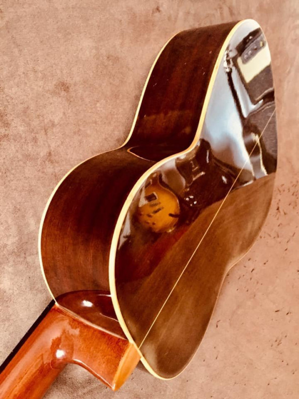 Entièrement faite main à Paterna (Valencia) en 1991, il s’agit d’une 3/4 avec un diapason de 57 cm, soit 22,4 pouces.