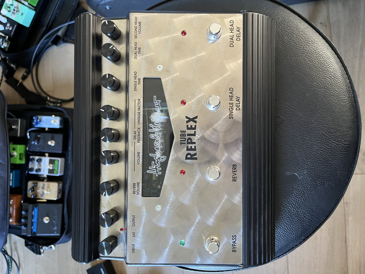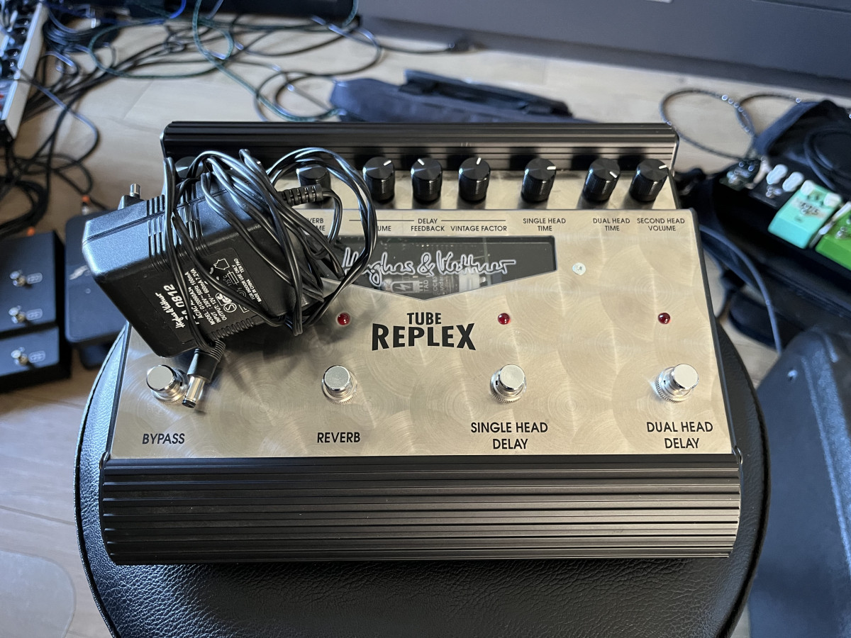 The Hughes & Kettner Replex from the Tube Tools series is a tube-driven reverb/delay effect with classic vintage flair. The comprehensive effects unit combines the proven ECC83 analog tube circuitry with a digital effects board to deliver authentic sounds from the analog and digital worlds. Using the Vintage Factor control, the sound can be continuously changed from clear digital delay to the coveted tape sound with characteristic tape distortion. In addition, the Replex features Single Head and Dual Head Mode with separate controls for delay time and volume of both head simulations.