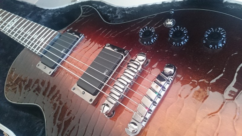 Le manche est plus fin que sur une Les Paul. Elle est également plus légère et plus fine qu'une Gibson, un peu comme les ESP / LTD.