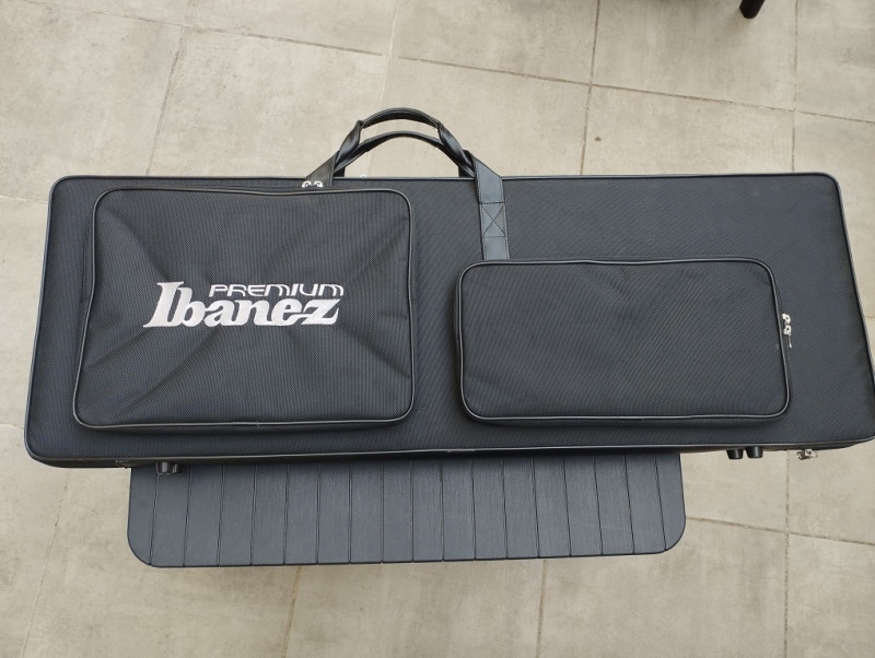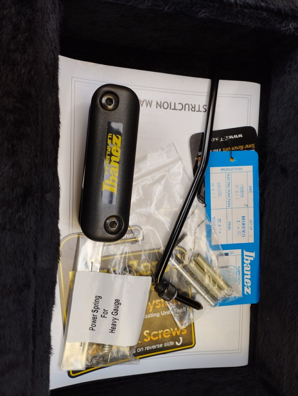 Fournie avec son case officiel semi-rigide, revêtement toile, ressorts supplémentaires, multi-outil Ibanez.