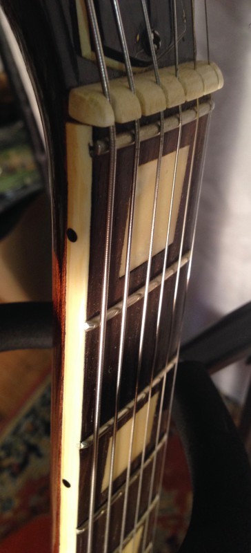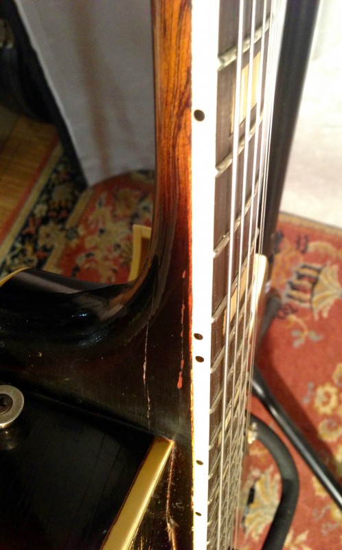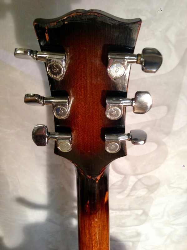 Mécaniques Schaller d'origine. Trace ancienne de réparation de la tête, parfaitement consolidée.