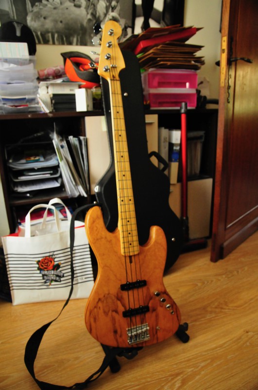 Depuis j'ai changé les micros pour un set de hepcat, changé les bouchons de potards et elle est passée entre les mains expertes de mon luthier préféré car il y avait un problème d'action trop haute, réglé depuis.