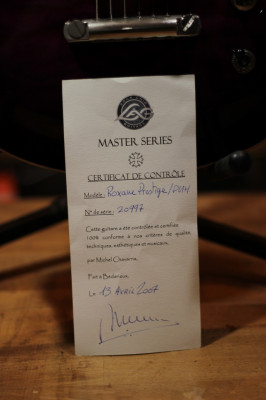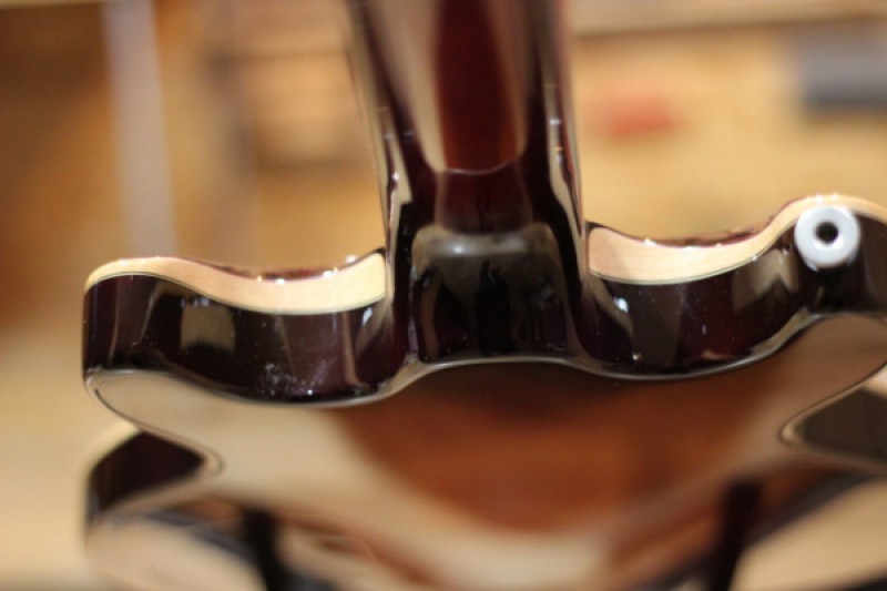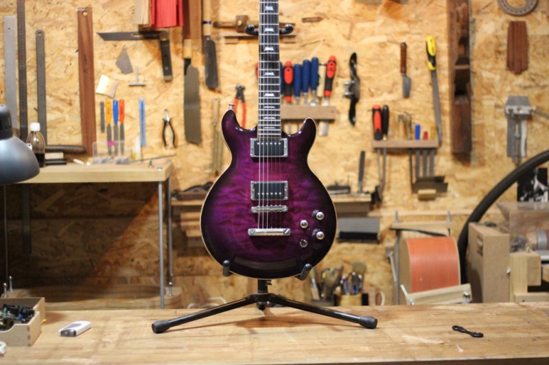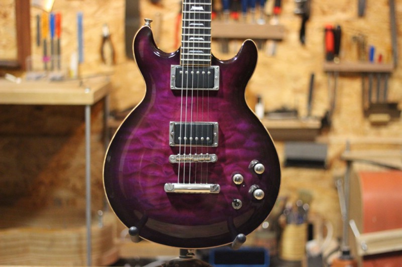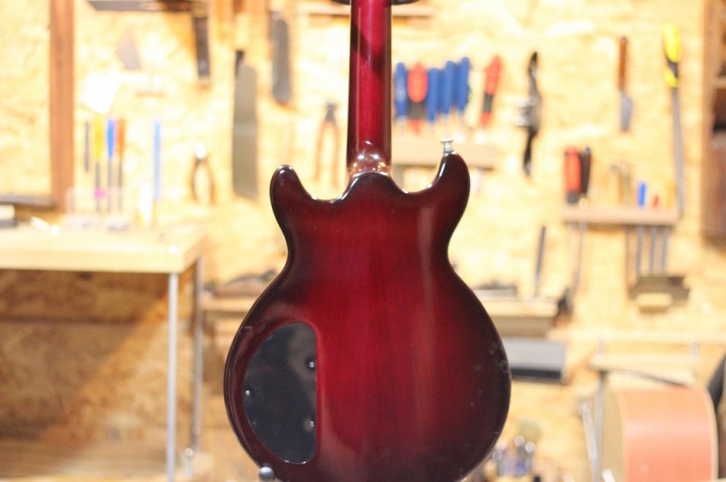 Cuerpo: Sólido, de caoba de Camerún. Tapa de arce flameado.