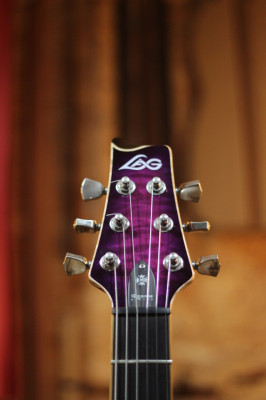 Mástil: Encolado, en caoba, con diapasón de ébano africano y binding de arce. Doble refuerzo en titanio y unión ergonómica con el cuerpo.