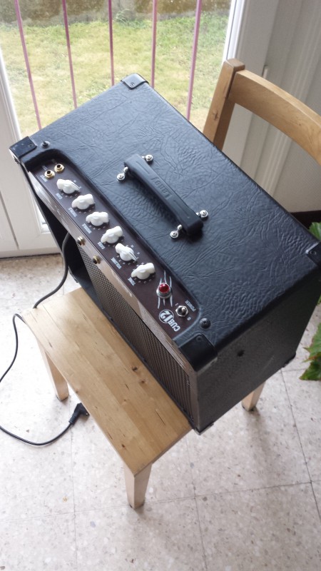 Je vends ce petit Laney CUB 12, un petit combo 15w à lampes bien sympathique ! Il est en parfait état général, simplement une lampe de préamp' est à changer (l'ampli met une dizaine de minutes à vraiment "chauffer" niveau son avant de tout donner). La lampe en question scintille beaucoup moins que les autres, et en sautant l'étage de préamp' (en se branchant donc direct dans la boucle d'effets) il n'y a absolument aucun soucis concernant les EL84.