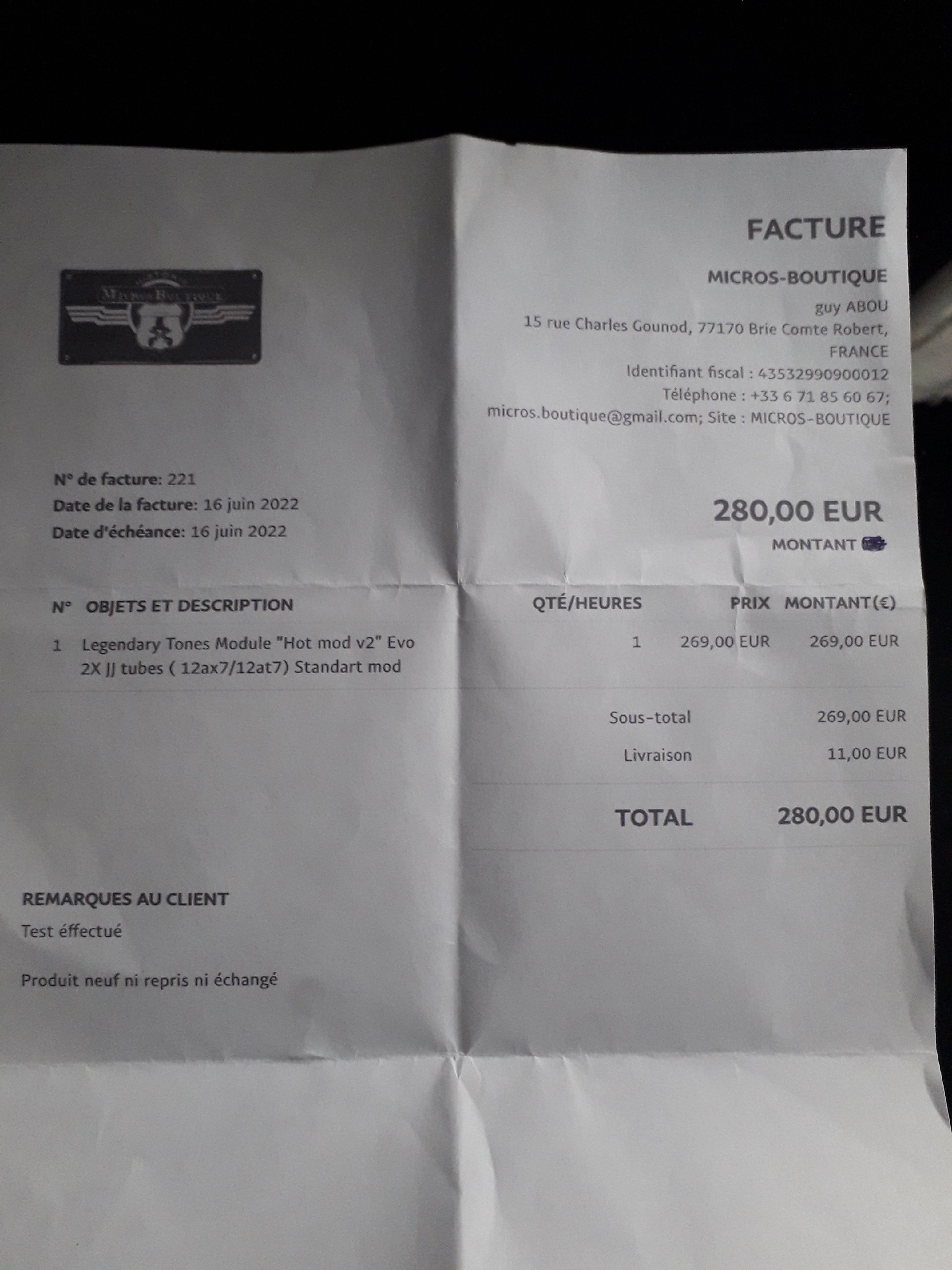 produit neuf servi 2 fois acheté 280 euros (fraide port out)à Micro Boutiqueen juin. plus d’utilité (chgt d ampli).