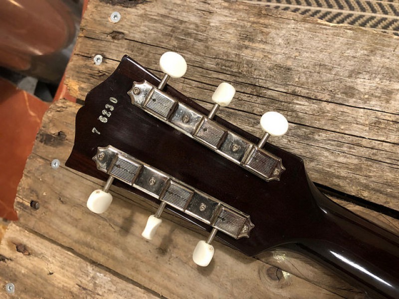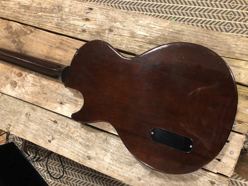 Tout acajou, sunburst 2 tons, quelques traces de jeu mais excellent état général.