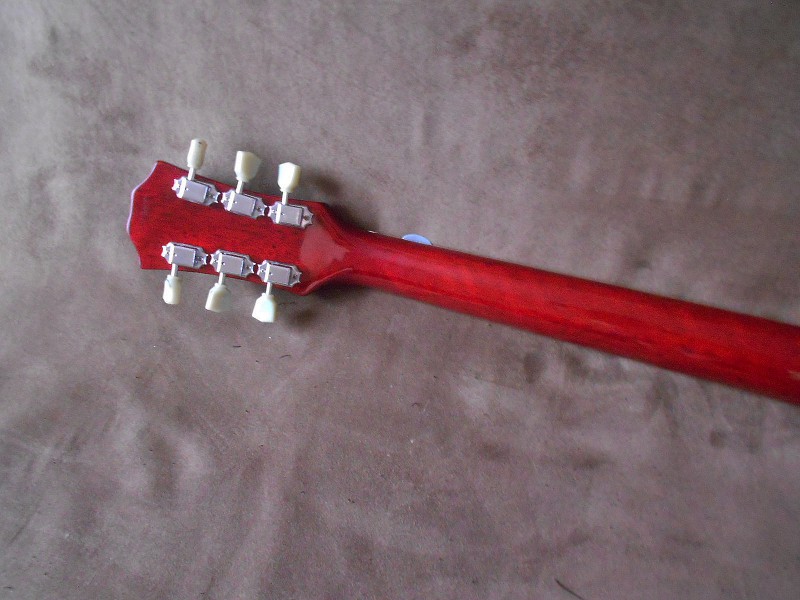 La guitare a une douzaine d'année, mais très peu de marques, quasi état neuf. j'en ai une autre en Vintage Burst que j'ai upgradée, beaucoup jouée, et que je garde!!