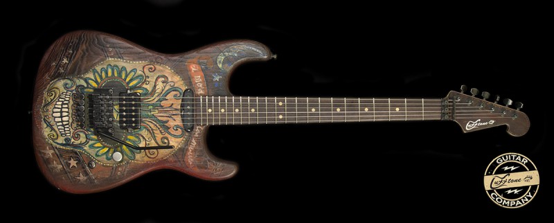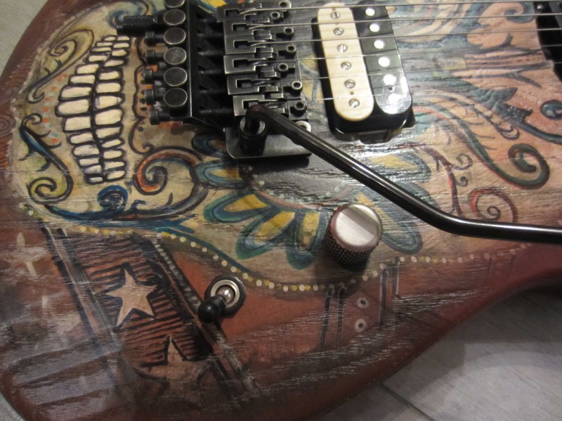 Ces guitares avec la déco de cet artiste coutent 3695 $ sans compter les frais de port et les taxes de douane.