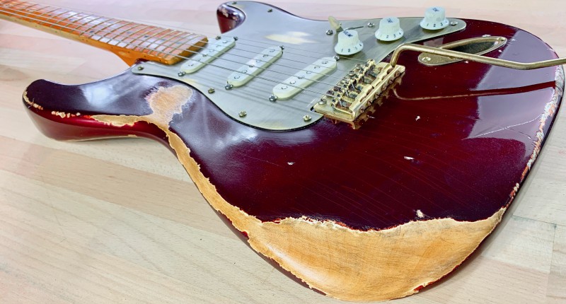 - Finish in 100% full-nitro Candy Red Apple and professionally aged by MJT USA and S71 Custom Guitars.