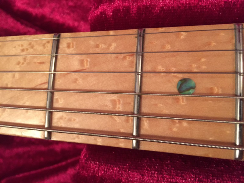 Le dos a une skunk stripe en rosewood qui recouvre le truss rod réglable à l'aide d'une clef allen par le haut (fonctionne parfaitement).