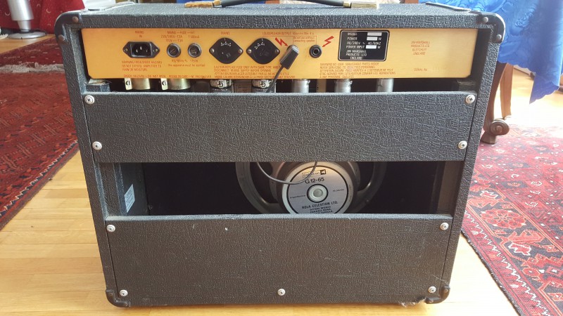 A vendre, combo Marshall 4010 de 1982. C’est la version combo du 2204, entrées verticales, avec un HP G12-65. Tout d’origine, les boutons de potentiomètre sont en état moyen et à remplacer (il en manque un deja), le tolex a pris quelques coups mais l'état général est bon et tout fonctionne.