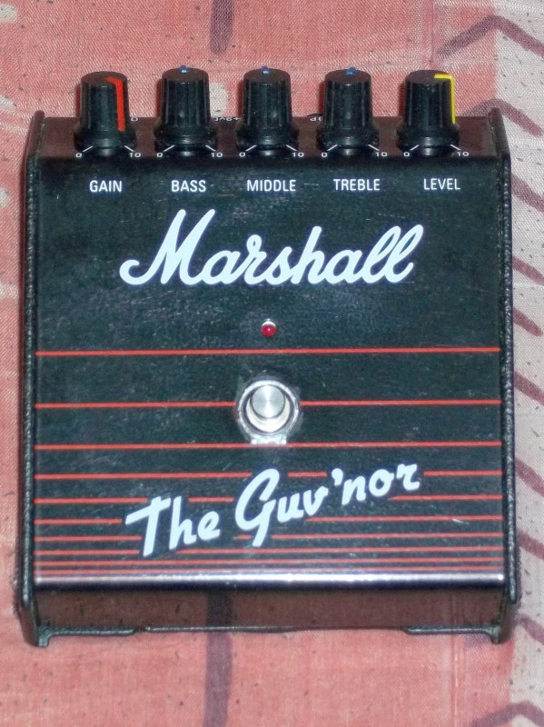 Je vends une pédale Marshall The Guv'nor overdrive en état excellent. sans boite. la trappe de batterie est toujours présente, velcro au dos.
