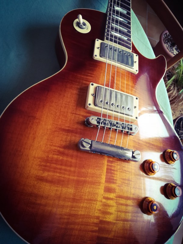c’est la 4ieme les paul que j’ai eu en ma possession (1 esp eclypse, 2gibson,1 de luthier) et j’ai un ami qui a une black beauty de 96 ainsi qu ’une r8 que j’ai eu de longue heures dans les mains… j’ai vendus toutes mes les paul toujours mecontent, pour finir il ya 2ans avec cette maybach qui a été ma préféré devant les gibson.