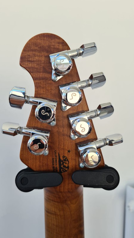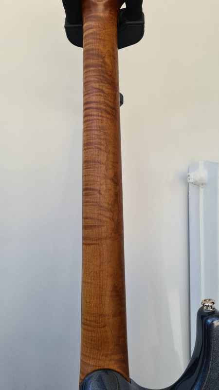 Le manche est en érable flamé AAAA et "roasted" afin de détruire toutes les impuretés et moisissures logées dans le bois afin d'améliorer la résonnance. Le radius est de 12" et la touche en palissandre. Sa finition est Gunstock oil ce qui donne un toucher type satin très lisse et très agréable à jouer. Mécaniques Schaller M6-IND à blocage.