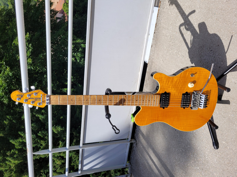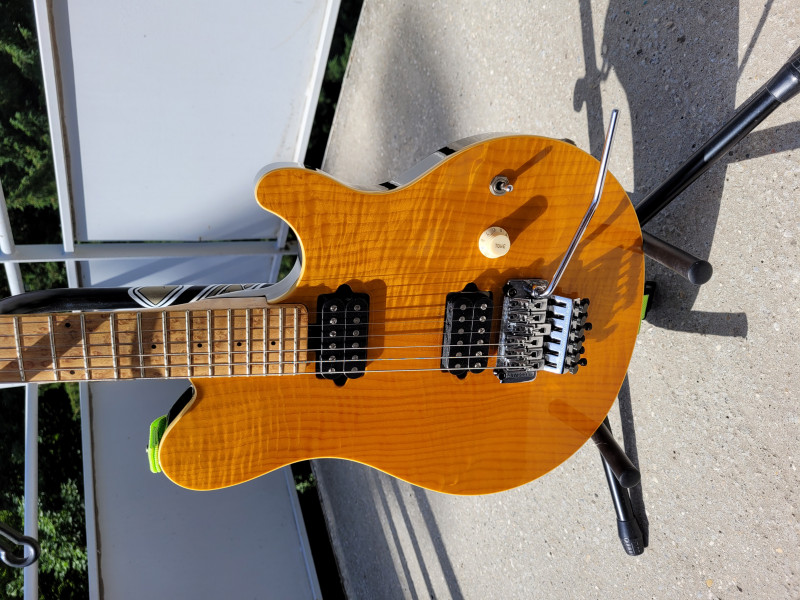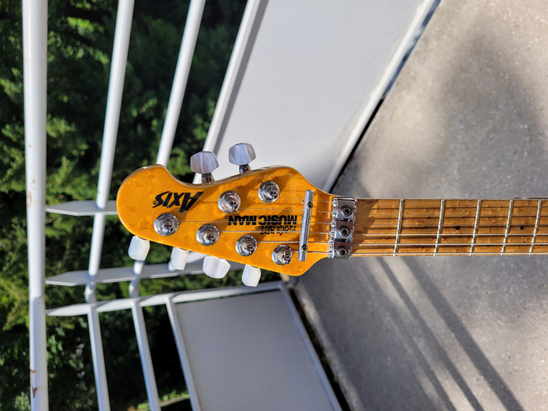 Je vends cette Musicman Axis Trans Gold flamed top, datée du 27 juillet 2000 d’après son numéro de série.