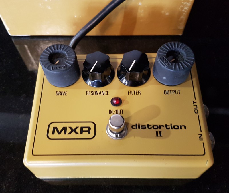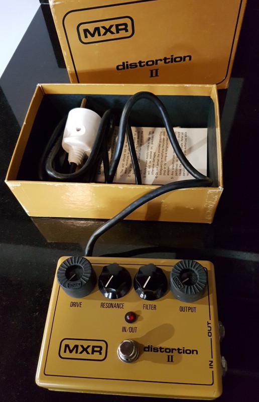 Bonjour, je ressort de mon placard une pédale MXR distortion II des année 80. J'ai acheté cette pédale il y a quelques année en lot avec une guitare et un ampli et je ne l'ai jamais utilisée à part pour l'essayer et elle fonctionne parfaitement bien. D'ailleurs le vendeur m'avait dit l'avoir achetée neuve et très peu utilisé également. Quand on voit son état on en doute pas!