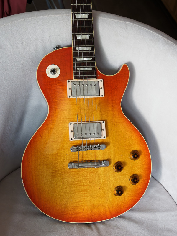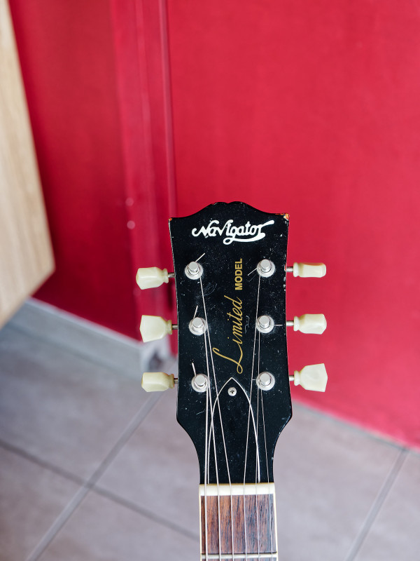 Je vends une guitare électrique Navigator N-LP 380 de 2003, copie japonaise de Les Paul très haut de gamme fabriqué par le Custom Shop de chez ESP. Elle est en bon état pour son âge (mis à part le vernis nitro au dos, typique des Navigator de cette époque et quelques éclats de vernis) et d’origine (hormis upgrade micros).