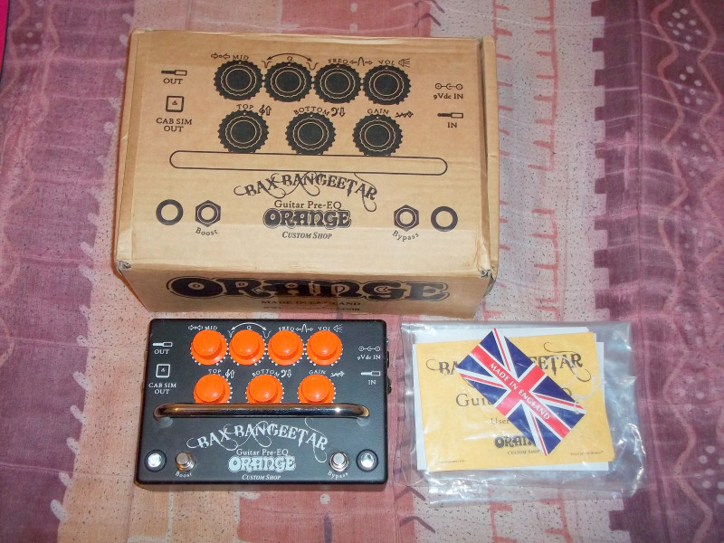 Je vends une pédale Orange Bax Bangeetar distorsion overdrive boost en très bon état. avec boite, manuel.