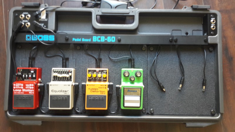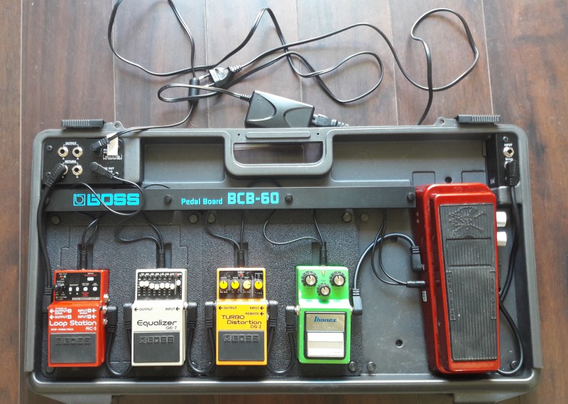 Franchement, il est vraiment pratique, les pédales format BOSS/Ibanez bougent pas dedans, même la wah reste à sa place. Pas ou peu de souffle sur mon transistor 30w en fonction du volume!