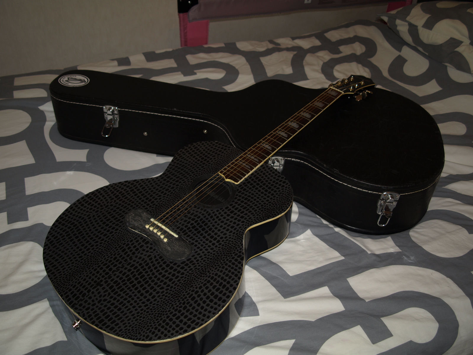 A la base, c'est une EJ-200 black, sur laquelle j'avais fait poser à l'époque un capteur Fishman sous le sillet...