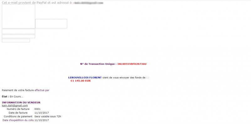 - Il vous envoie ensuite un mail disant qu'il a fait le règlement (Il n'y a bien évidemment rien sur votre compte). Vous aurez alors dans vos