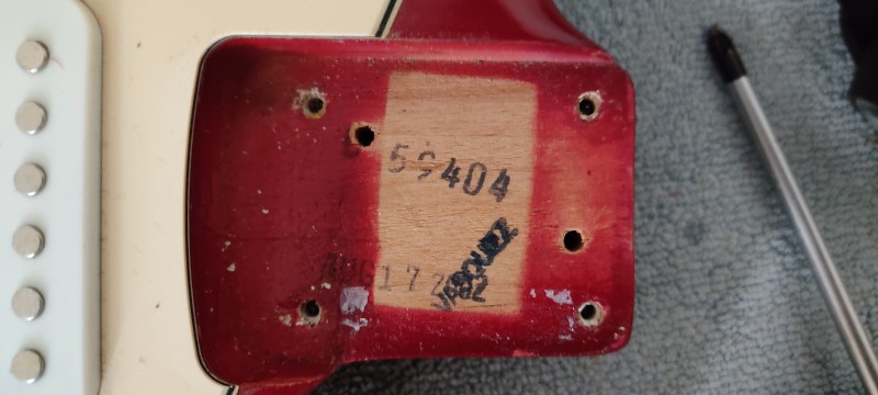 Essaie de retirer la plaque, tu trouveras peut-être d'autres indices : autre tampon ou code barre avec numéro de série, disque creusé sous la corne basse de la strat (sauf erreur, indice que le corps a été fabriqué au Mexique), marque de potard ou de micro, etc...