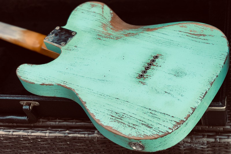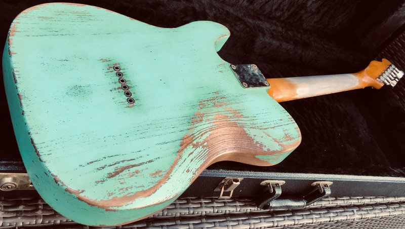 - High quality Swamp Ash body made in UK by luthier Philip Marshall. Finished in 100% nitro Surf Green, perfectly aged with plenty of details, yellowing, etc.