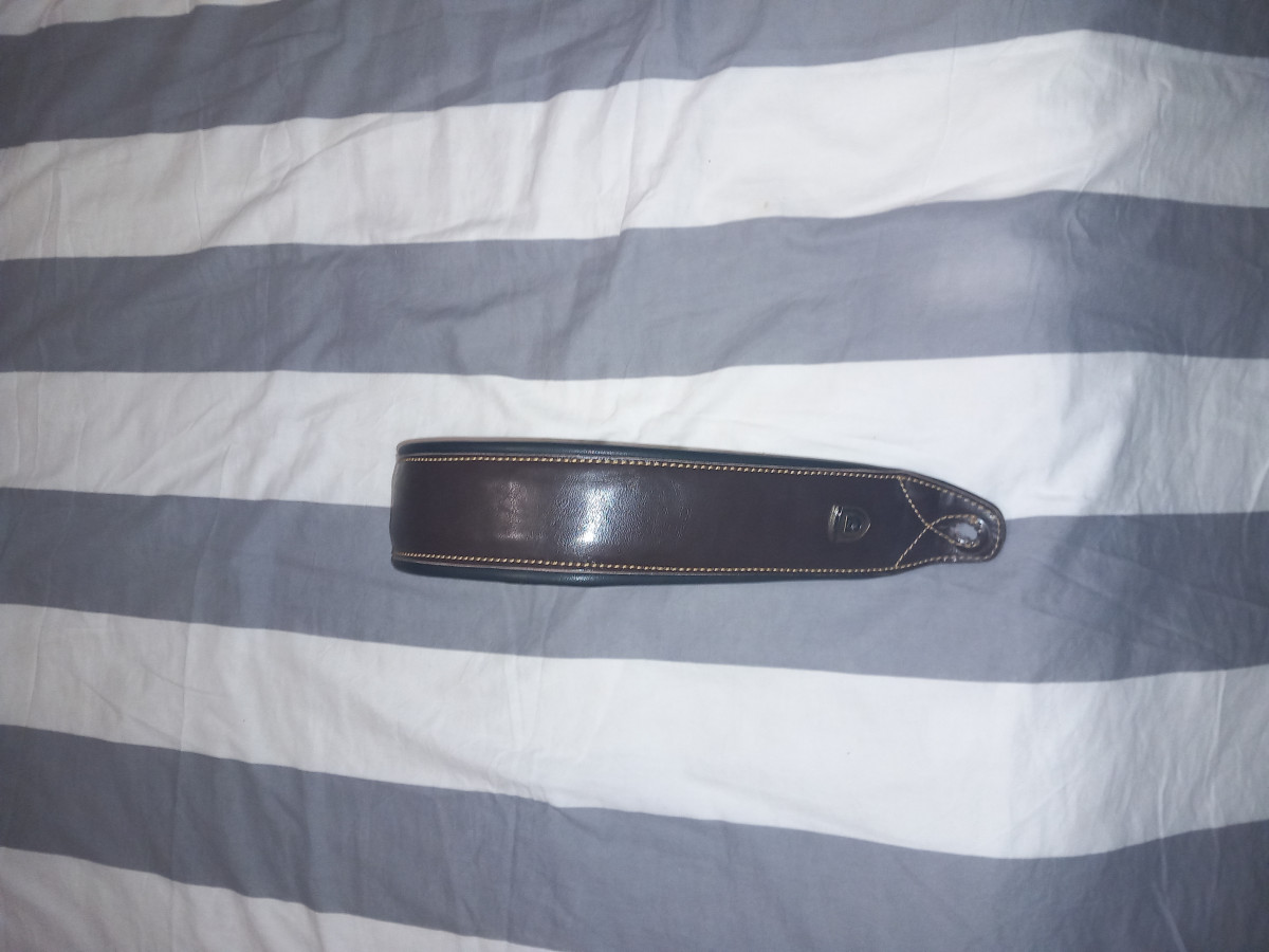 A vendre sangle guitare cuir rembourrée de couleur marron en très bonne état, acheté chez sangle guitare.