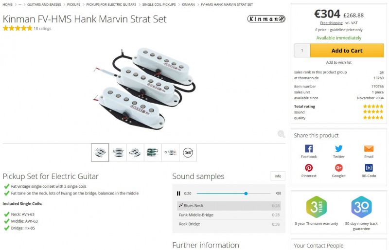 Kit de 3 micros Kinman HANK MARVIN en état neuf pour strat :