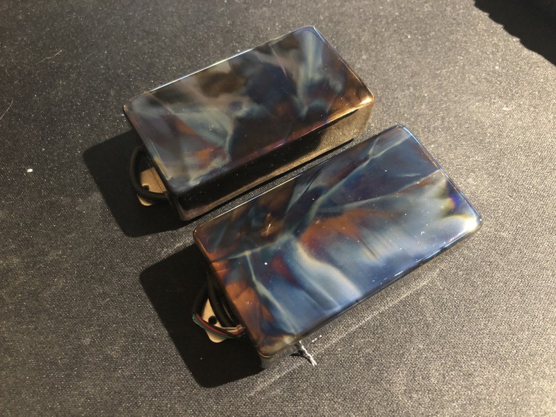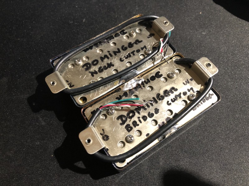 Je vends un set de micros Dominger Custom, faits sur mesure, en finition Burnt Metal. 4 fils, très bon état même si les fils sont un poil court.