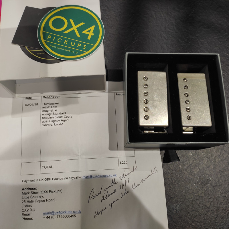 Je me sépare de mon set de humbucker Ox4 Pickups Low Wind, du fabricant boutique UK Ox4.