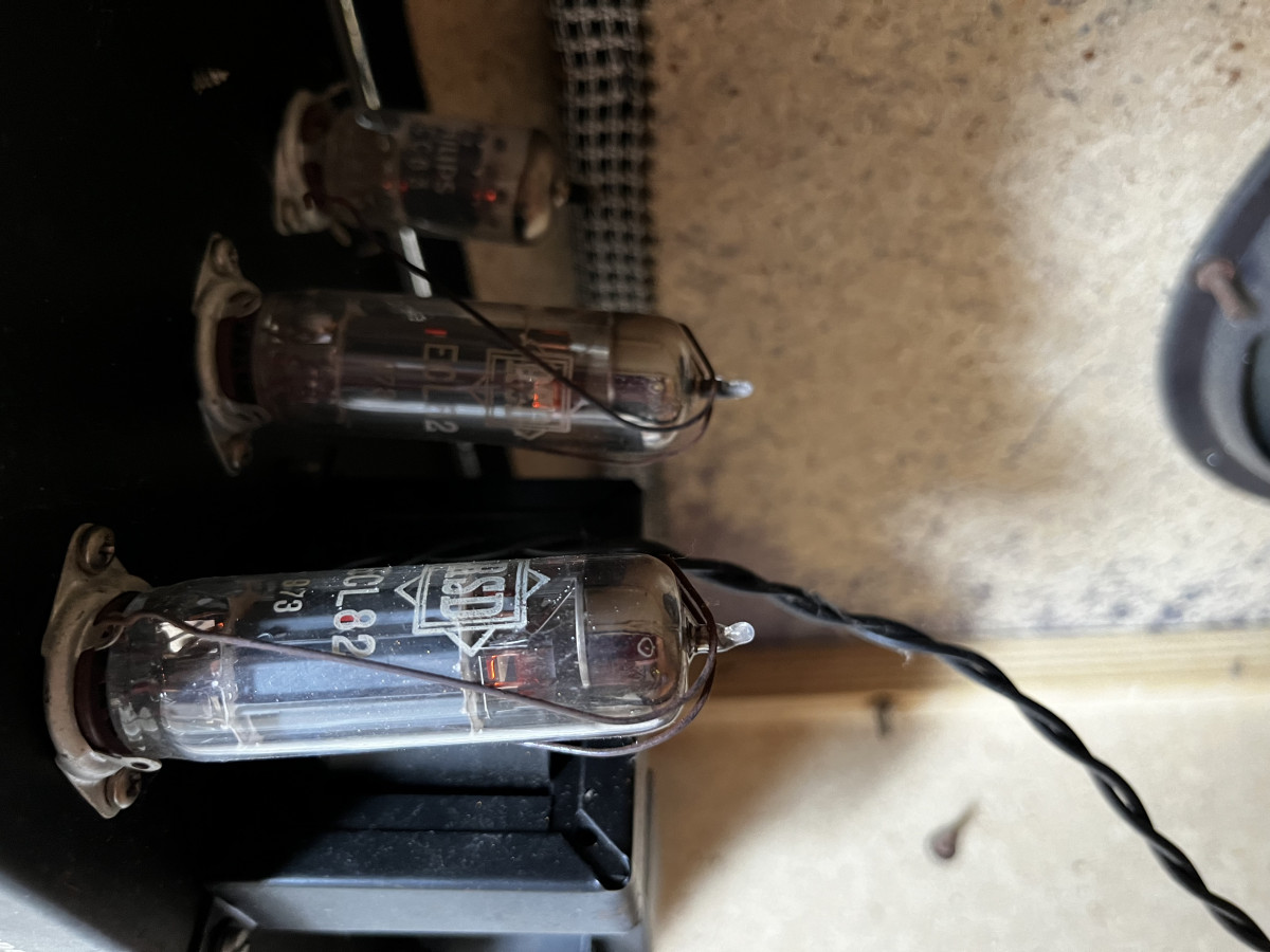 Vannes Philips d'origine parfaites 2xECL82 1x ECC83 Enceinte d'origine en bon état.