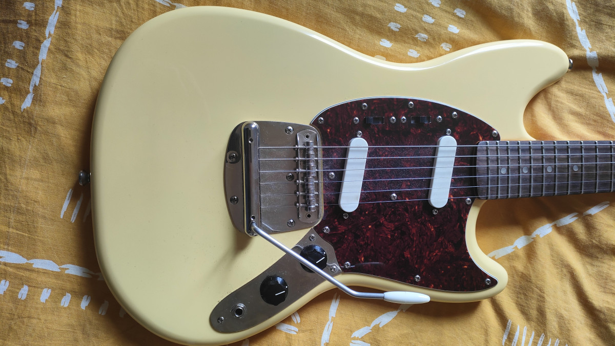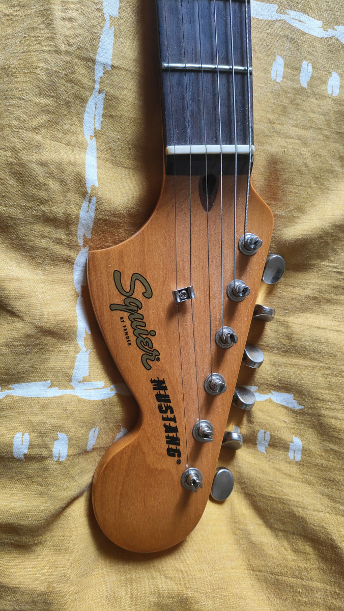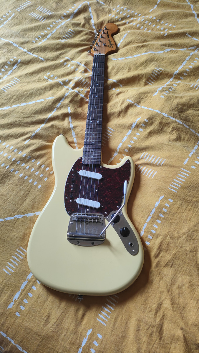 Guitare électrique SQUIER/FENDER Classic vibe '60 Mustang vintage white en très bon état.