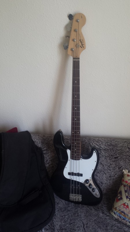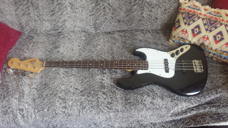 Je mets en vente cette joli basse Squier by Fender Jazz Bass Affinity. Elle a été très peu jouée (les cordes sont sans doute d'origine, prévoir de les changer éventuellement !), car je l'avais achetée d'occasion à un jeune qui s'était mis à la basse il y a quelques années mais avait abandonné, et je ne l'ai moi même que peu jouée (étant guitariste je ne le l'utilisais que pour enregistrer quelques morceaux, ou pour jammer). Elle a quelques traces et pocs ci et là, mais rien de méchant ! Housse fournie, envoi possible (colis très soigné) en Colissimo Recommandé avec assurance pour 25€ de plus (j'ai eu envoyé guitares acoustiques, électriques, ampli à lampes, etc...jamais eu de soucis).